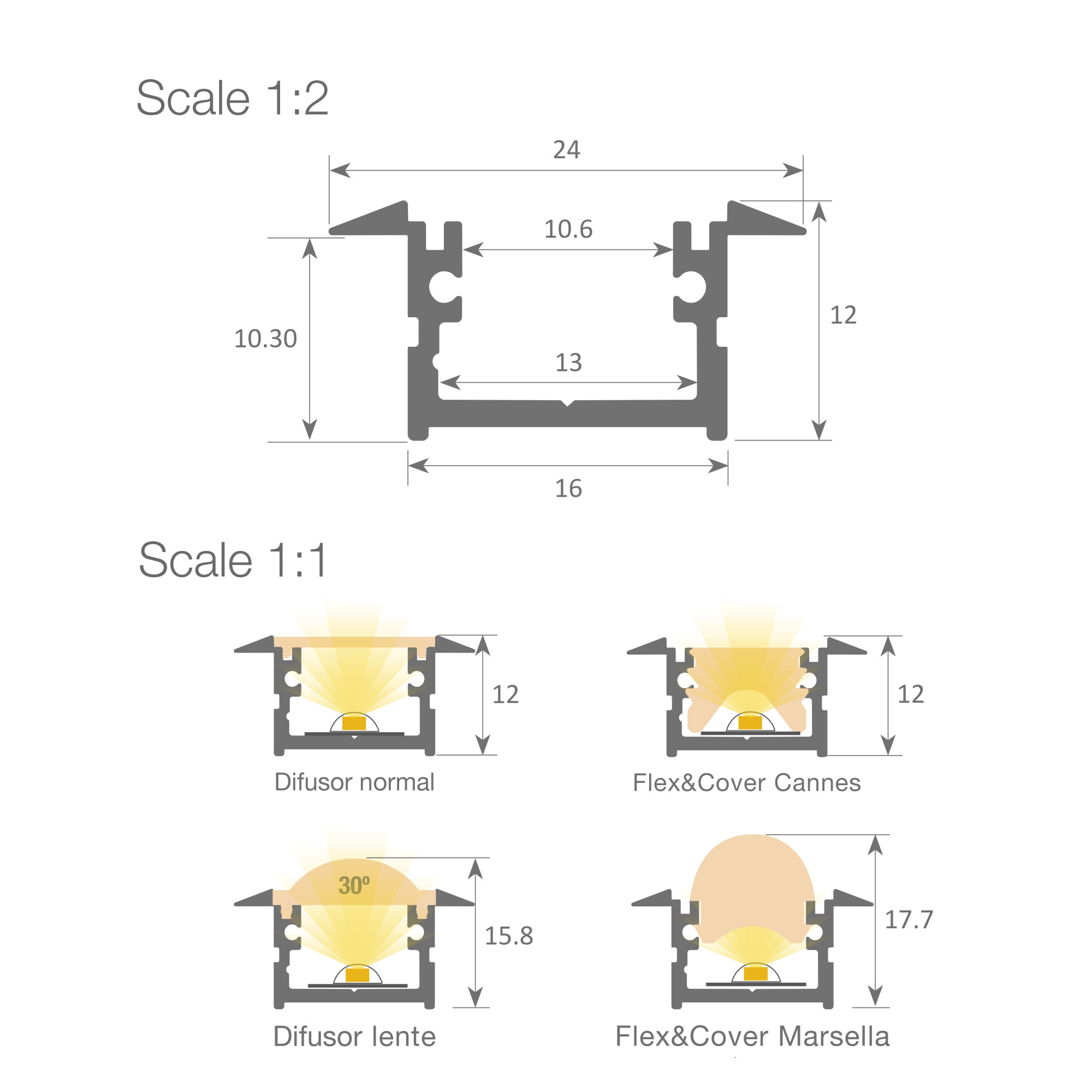 • Profilé vendu seul. Pensez à rajouter les Accroches, Embouts, et Diffusant pour compléter votre profilé