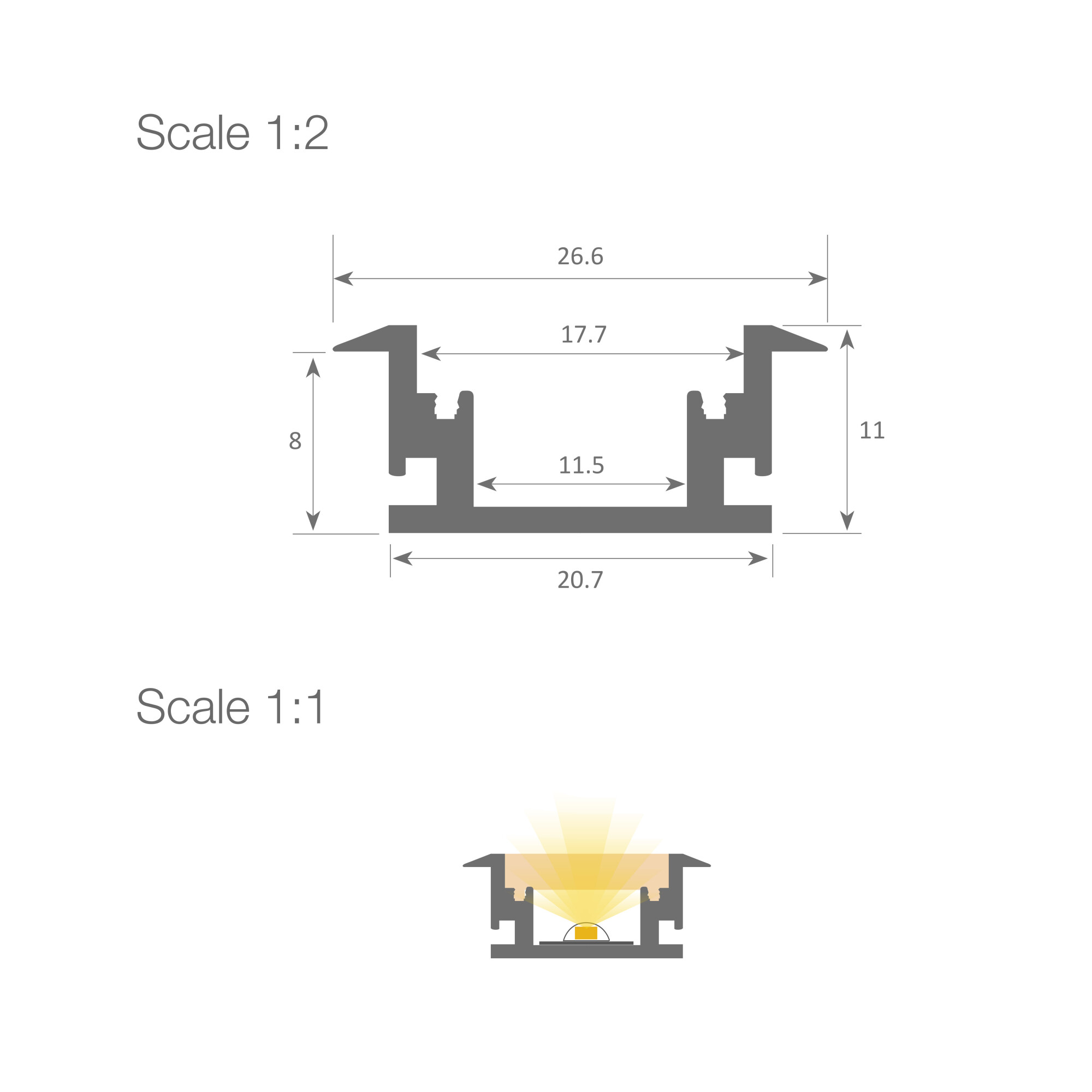 • Profilé vendu seul. Penser à rajouter les Accroches, Embouts, et Diffusant pour compléter votre profilé