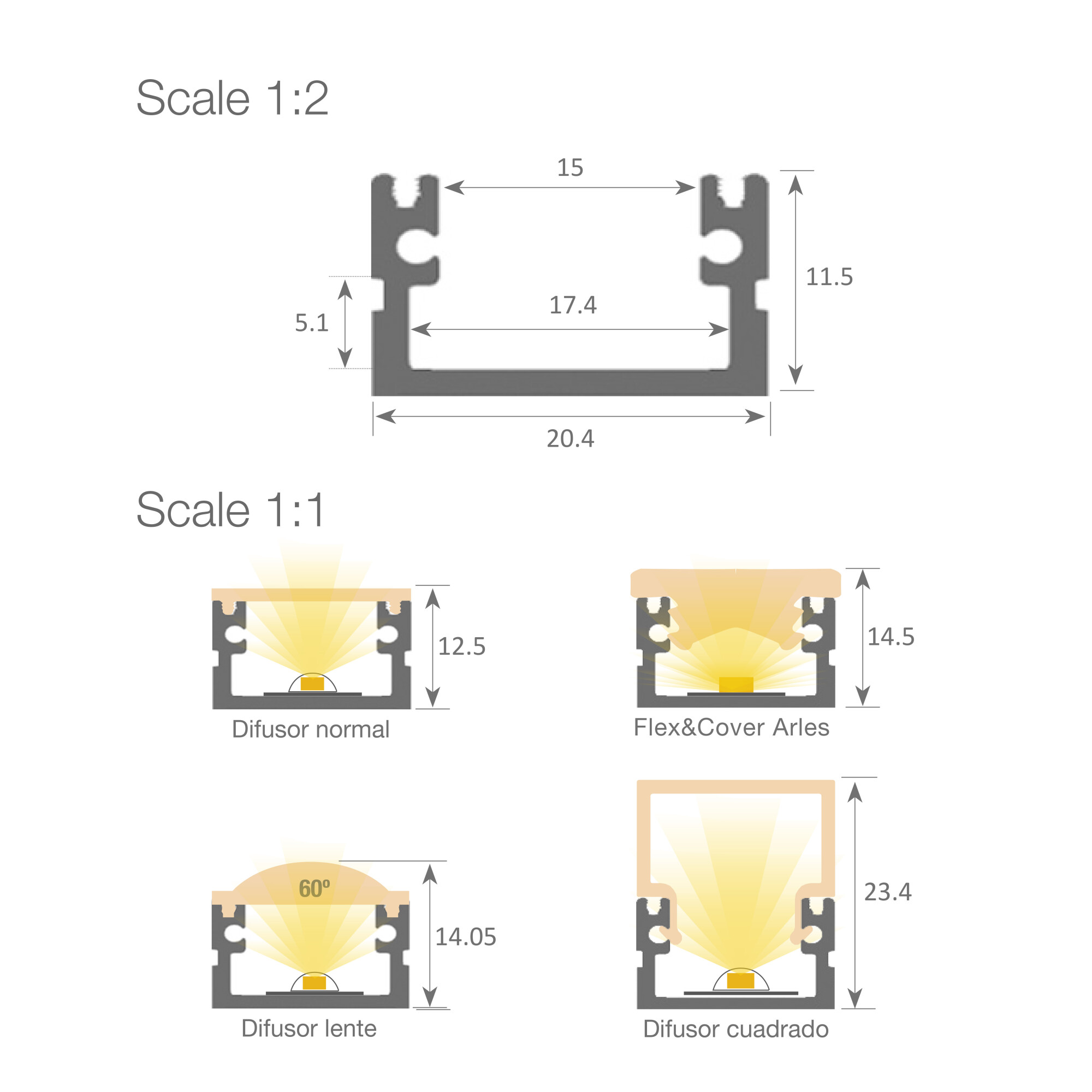 • Profilé vendu seul. Penser à rajouter les Accroches, Embouts, et Diffusant pour compléter votre profilé