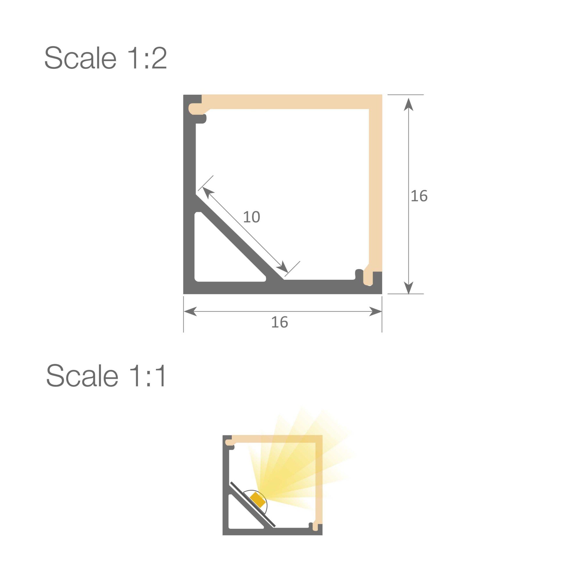 Le profilé Aluminium Zagreb est un profilé d’angle de qualité Professionnelle. Avec une largeur intérieure de 10mm, permettant l’adaptation de ruban LED jusqu’à PCB 10mm. Grâce à ses dimensions, et sa fabrication en aluminium de grande pureté, il saura habiller vos intérieurs. Idéal pour applications murale, meubles, étagères. Il peut s’adapter à toute situation où il est désiré un profil qui dirige la lumière en oblique, avec une bonne dissipation thermique et aidant à éviter tout effet Dotting. Dissipe la chaleur de ruban LED jusqu’à 20W/m.