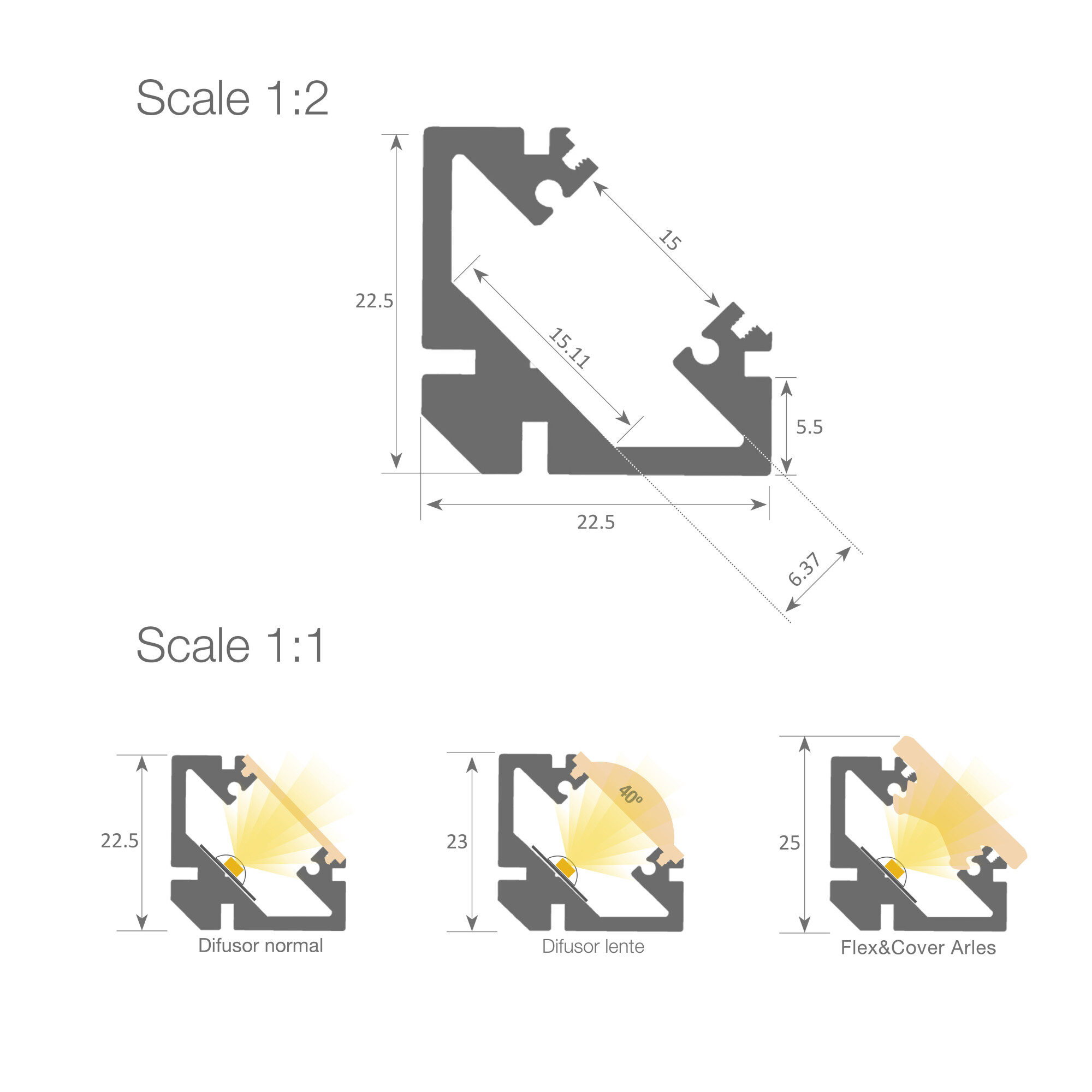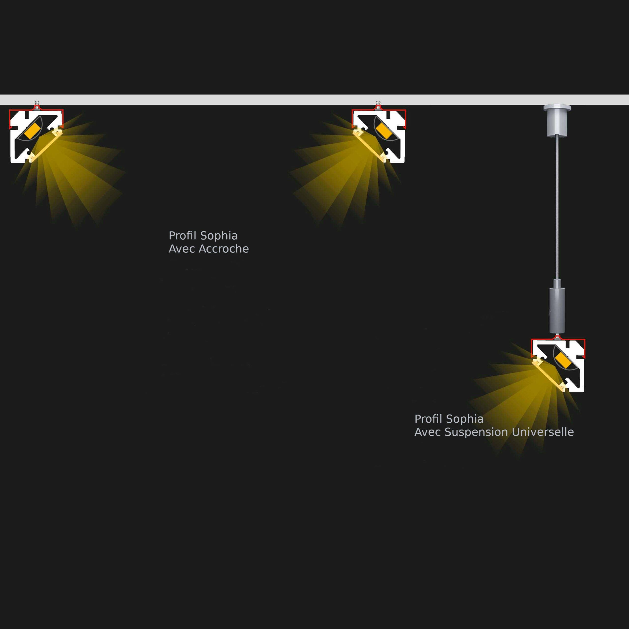 • Profilé vendu seul. Pensez à rajouter les Accroches, Embouts, et Diffusant pour compléter votre profilé