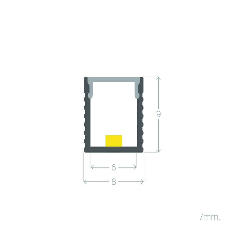 • Profilé à 2 plaques, très fin et adapté au ruban à éclairage latéral.