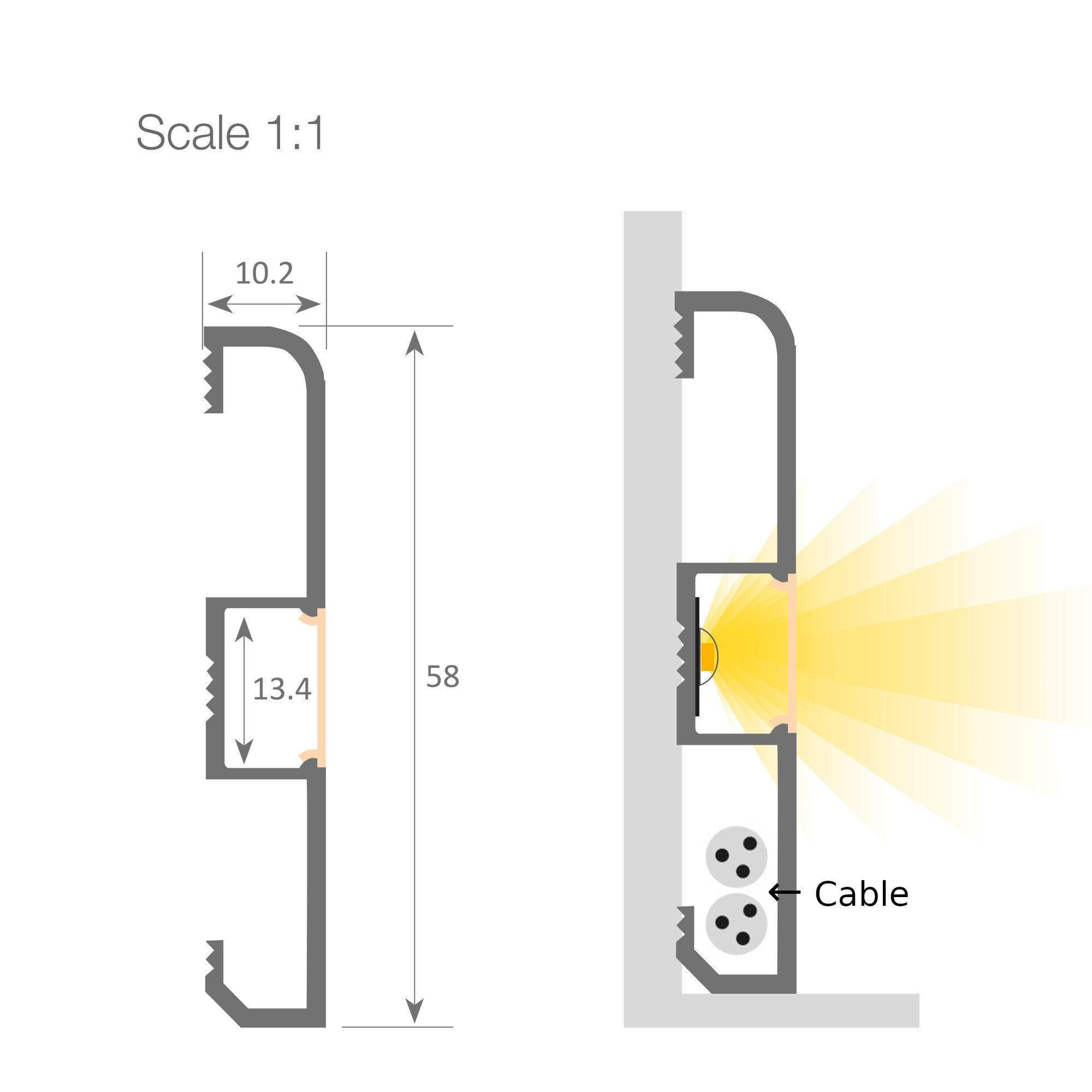 • Profilé vendu seul. Penser à rajouter les Accroches, Embouts, et Diffusant pour compléter votre profilé