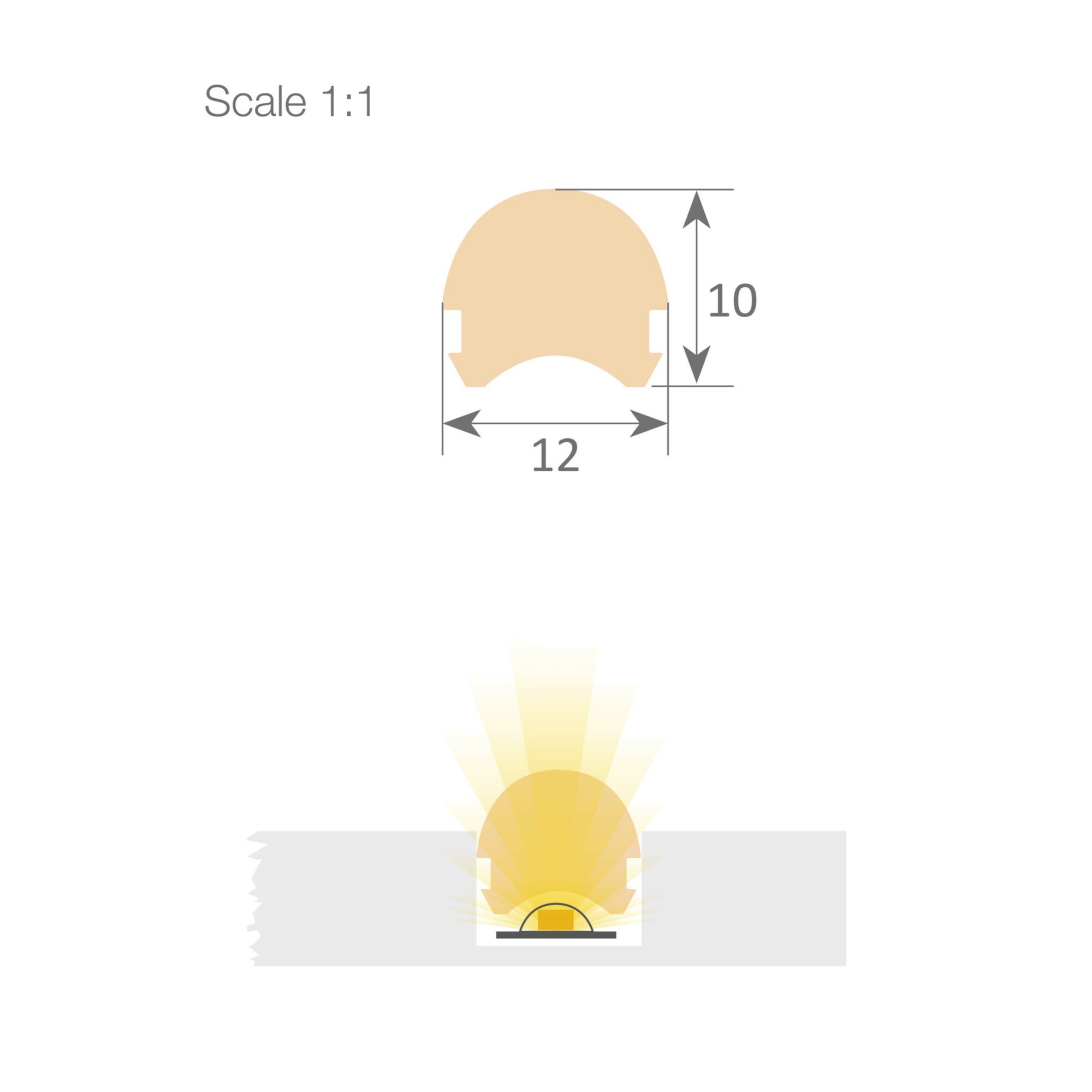 Il est idéal pour le cintrage, ayant un Rayon Minimum de Cintrage de 50mm. Sa fabrication en caoutchouc PVC combiné a un stabilisateur spécial pour les rayon UV, permet d’éviter tout jaunissement au soleil. Il a une dureté SHORE A 75. Résistant au feu UL94 V0. Sans Halogène. Incassable et de qualité irréprochable. Disponible en Blanc et couleur. La couleur final de l’ensemble dépendra de l’éclairage de votre ruban LED.
