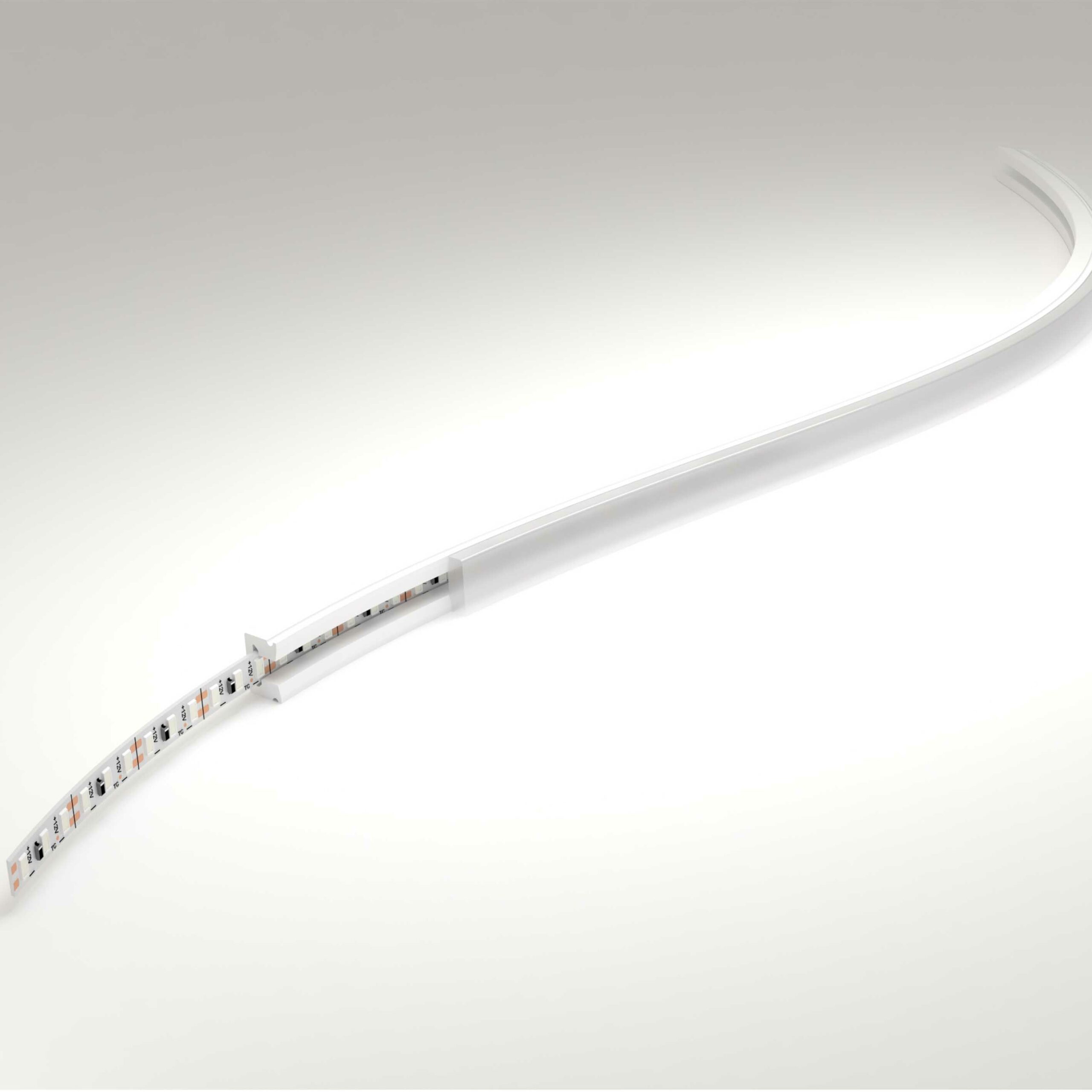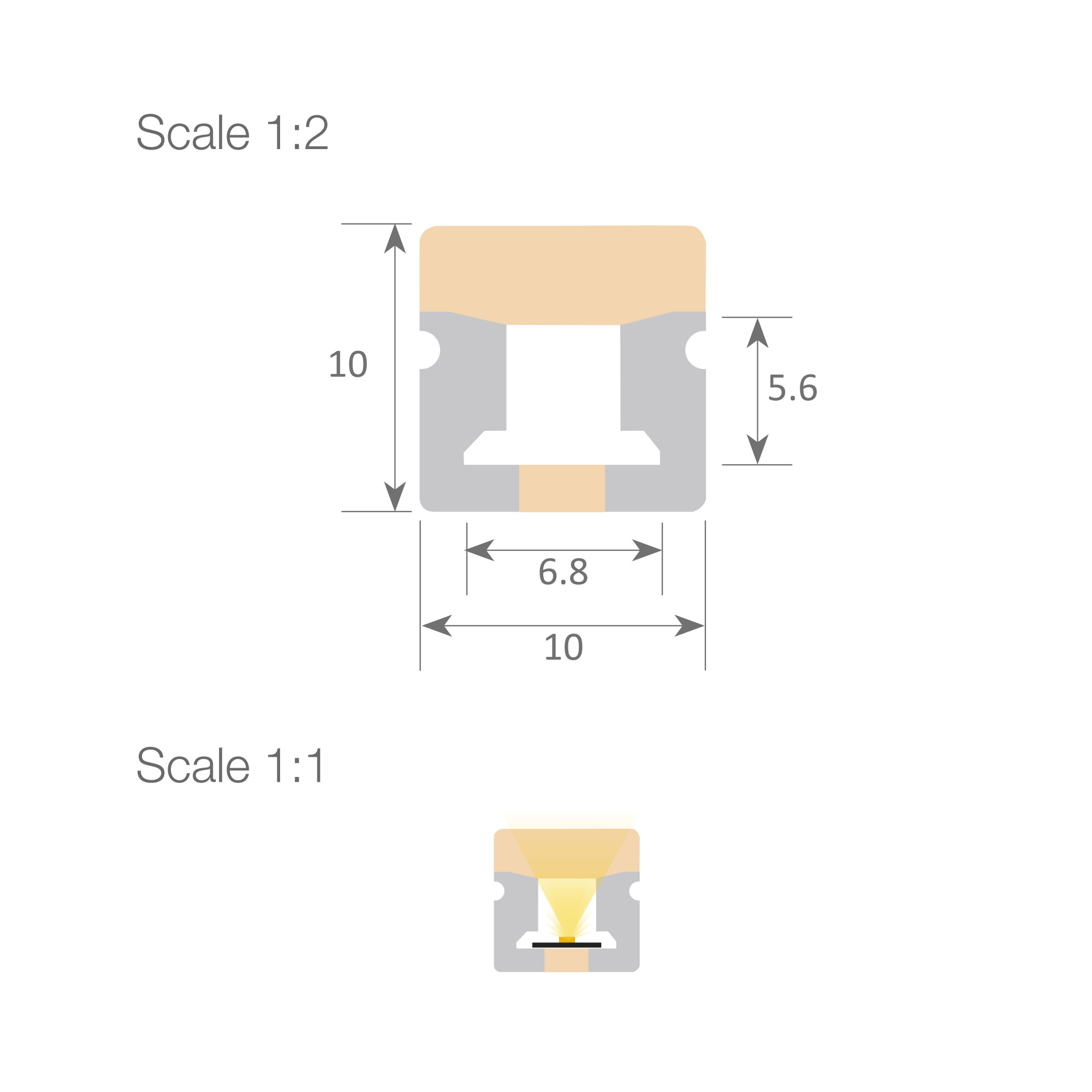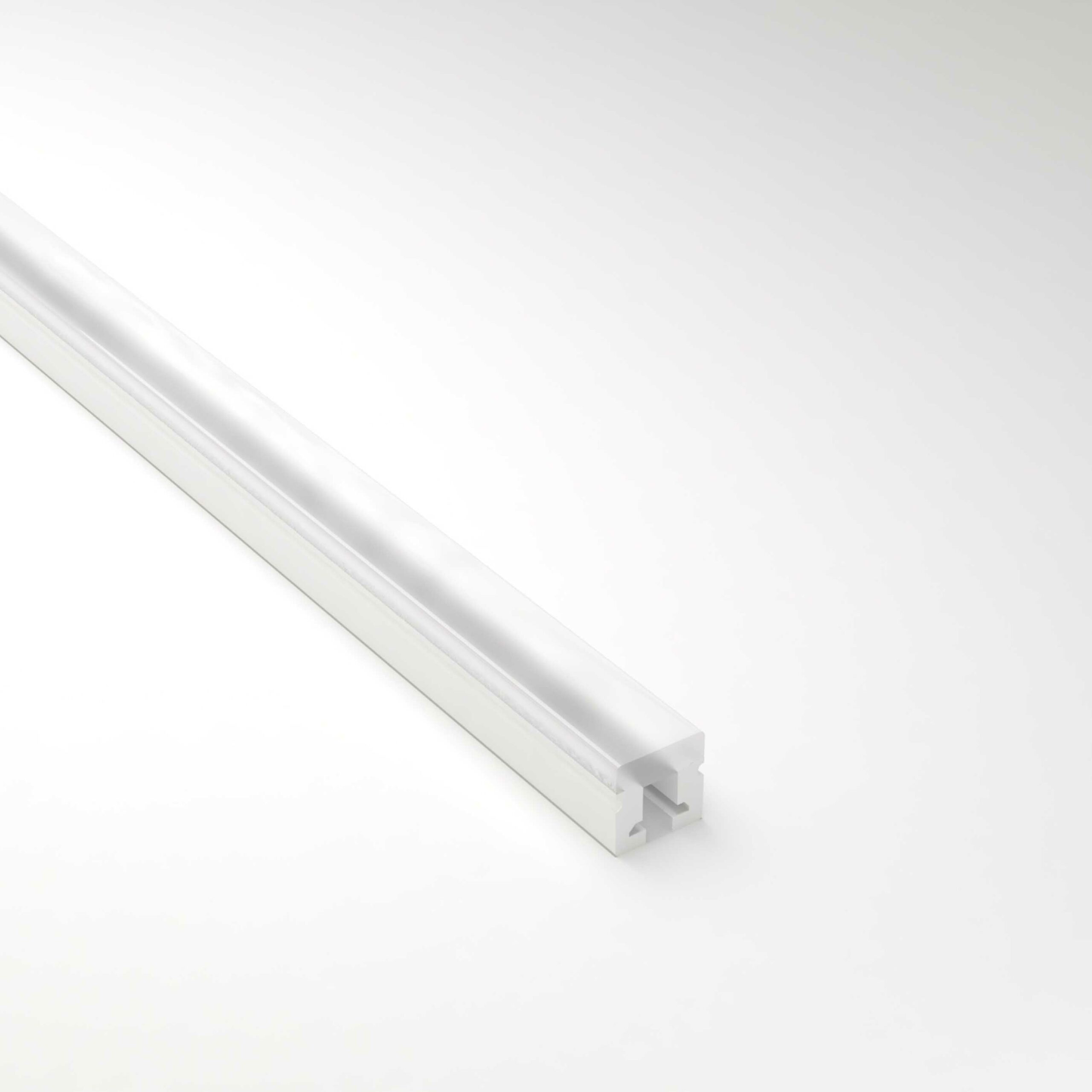 Profil en silicone de haute qualité avec frontal opalin de qualité Professionnelle. Ce modèle permet d’éclairer des reliefs, corniches ou de réaliser un éclairage périmétral décoratif. Il est donc spécialement indiqué pour les lettres et textes publicitaires qui imitent les néons traditionnels. Il dispose d’une cavité interne pour loger le ruban LED. Celui-ci doit être IP20 avec un PCB de 4mm ou 5mm et non supérieur à 12W/m. Grâce à son étanchéité IP67 et sa protection UV, il s’agit d’un produit apte pour extérieur et zones humides, il faut cependant sceller les entrées et sorties du ruban avec du silicone supplémentaire.