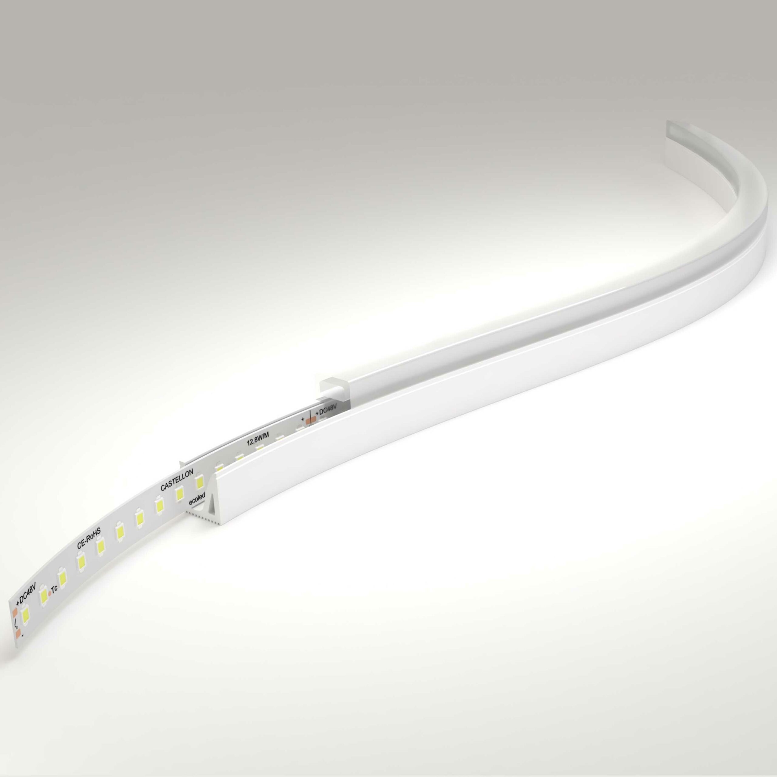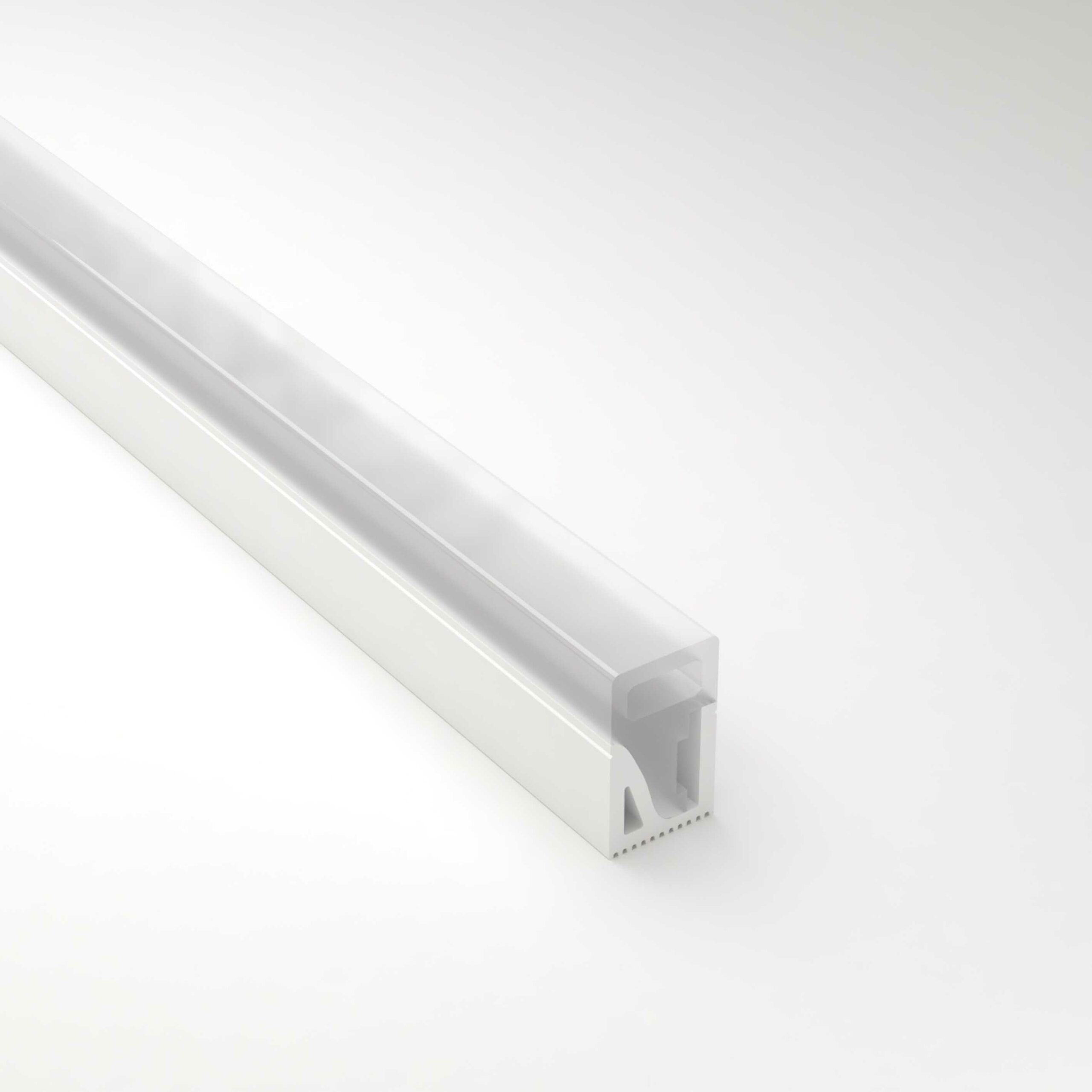 Il ne nécessite aucun diffusant particulier, il suffit simplement d’insérer le ruban LED à l’intérieur du Néon et vous pourrez le placer grâce à ses accroches ou directement en encastrement.