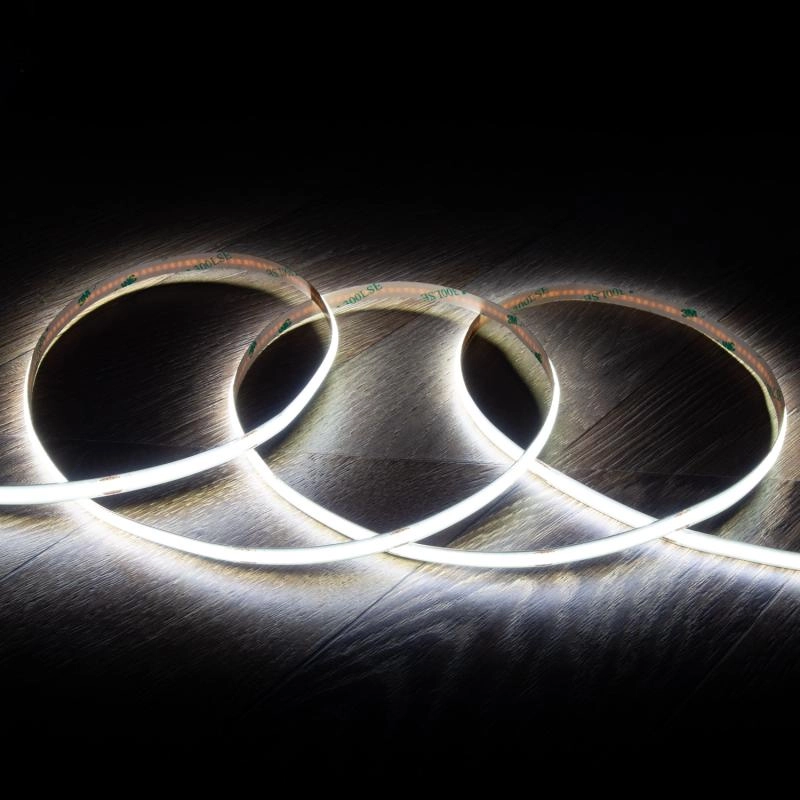 Le Ruban LED PHOENIX COB offre un éclairage puissant et uniforme. Il fonctionne en 24V DC avec 320 LED par mètre. Son design ultra-fin s’intègre dans les espaces les plus étroits. Il diffuse une lumière blanche neutre (4000K) avec 1000 lm/m.